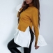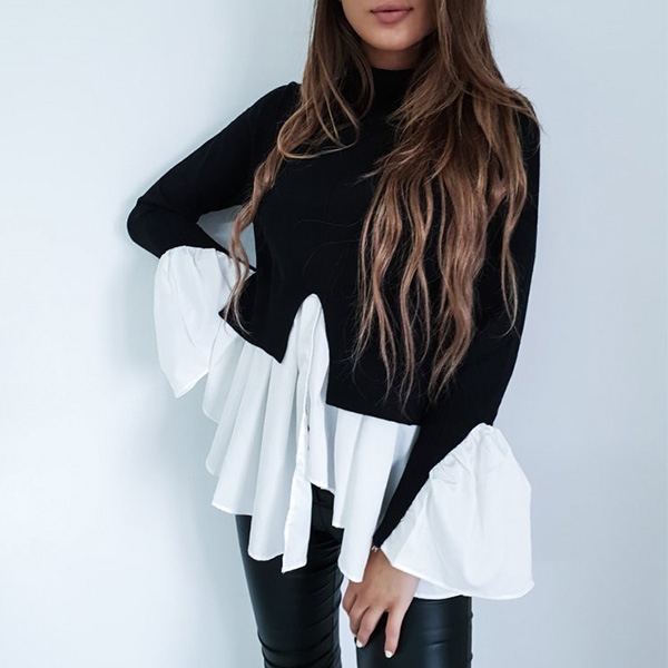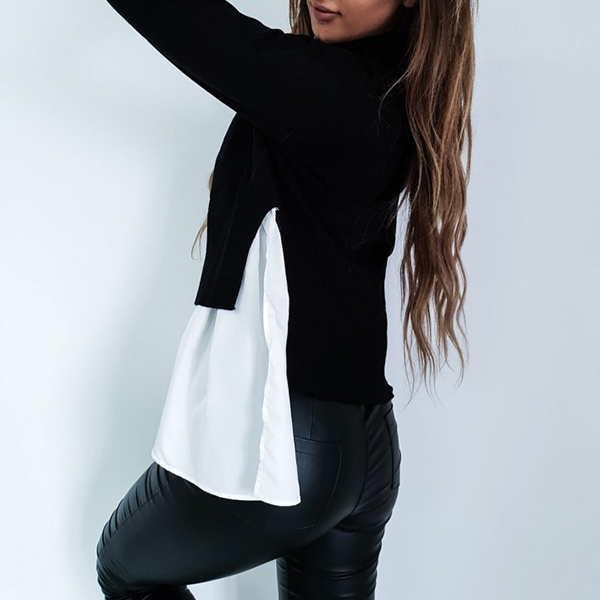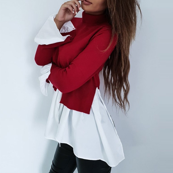 unique design style. Finished with long sleeve and high neck design,the irregular hem spliced design