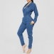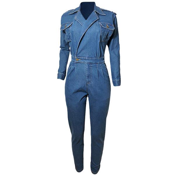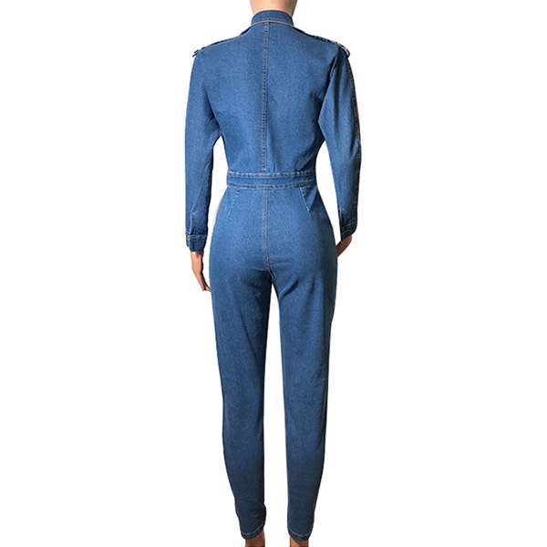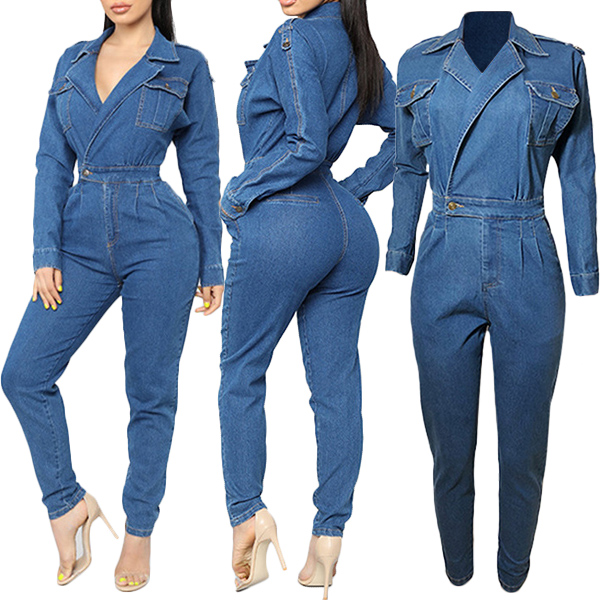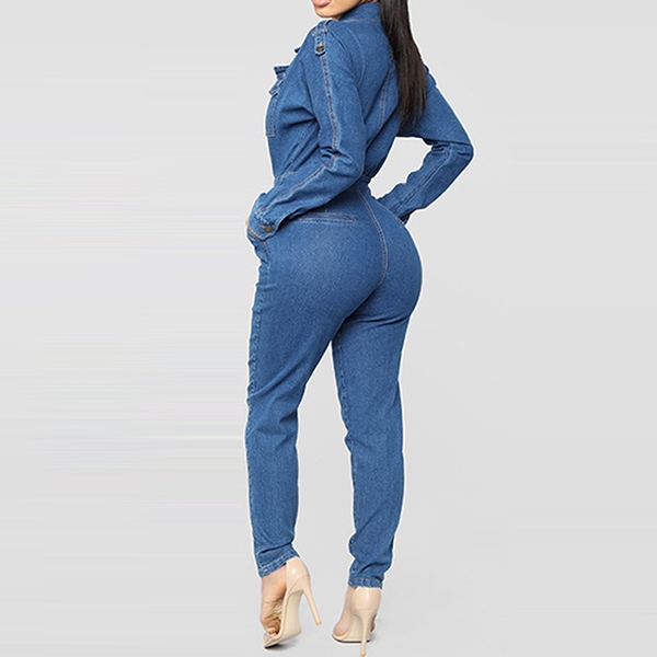 You can easily exude your charming feminine appeal through this denim jumpsuit. It is finished with long sleeve