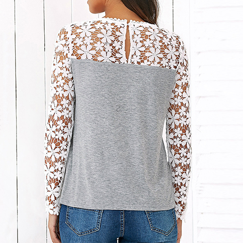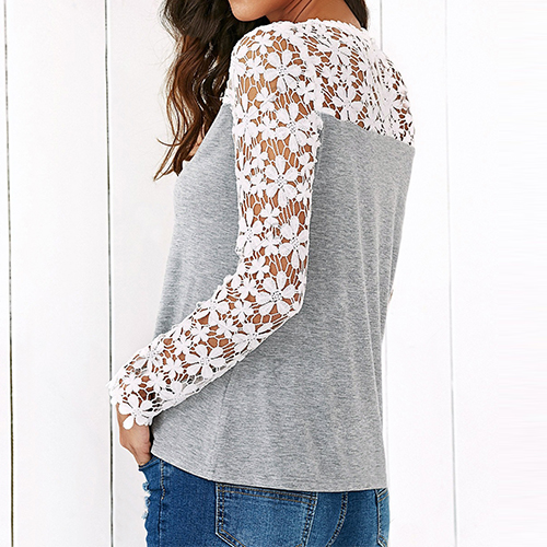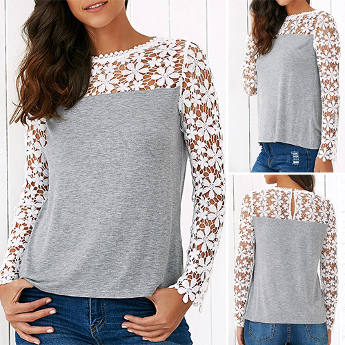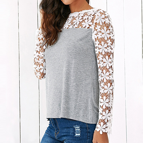 color, long sleeve, hollow out design, what's more this top is alos lace spliced, which make it look