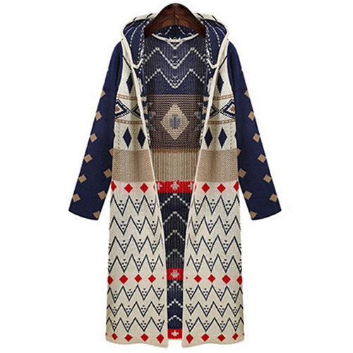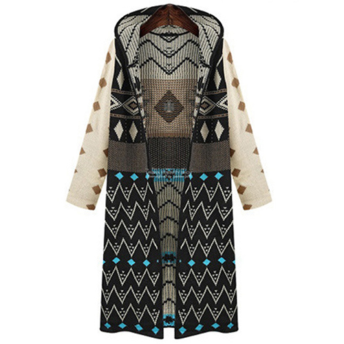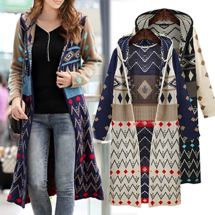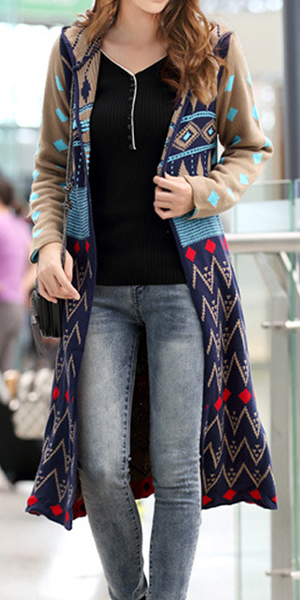 a fresher appeal. Boasting a chic printed pattern,with long sleeve and hooded design, this cardigan