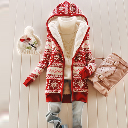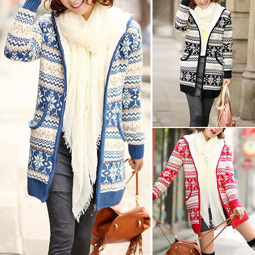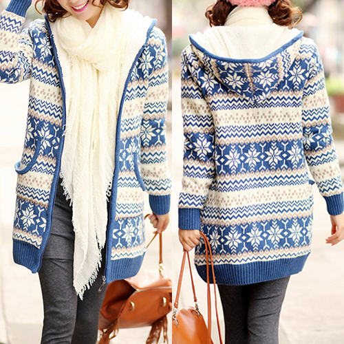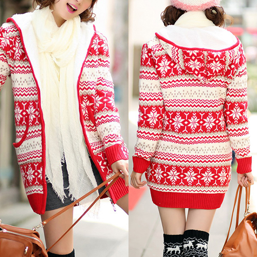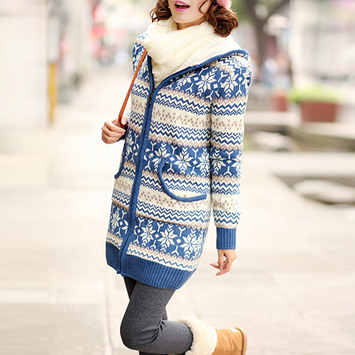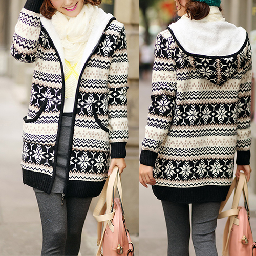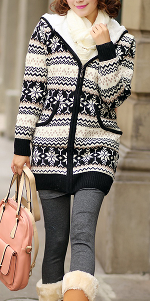 Your wardrobe should have this warm knit coat! It features snowflake printed style,