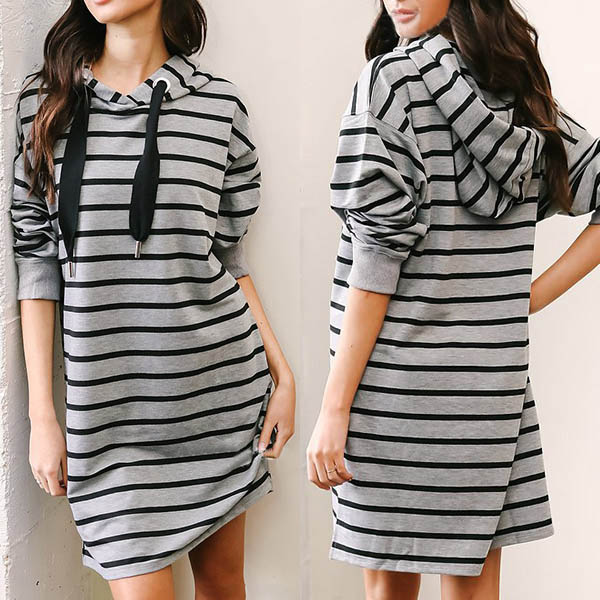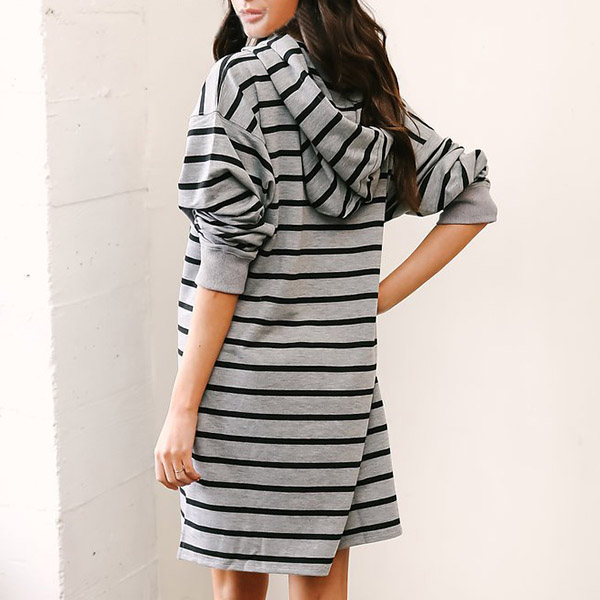 mornings. Designed with striped element,stylish and popular. Outfitted with long sleeve,hooded and a