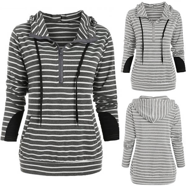 designed with striped element,stylish and popular. Finished with long sleeve and hooded silhouette,