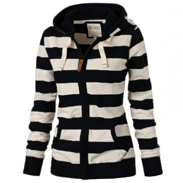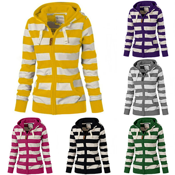 The striped element design will enhance its fashion appeal,while the long sleeve,hooded silhouette