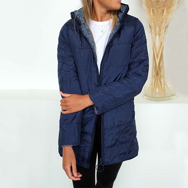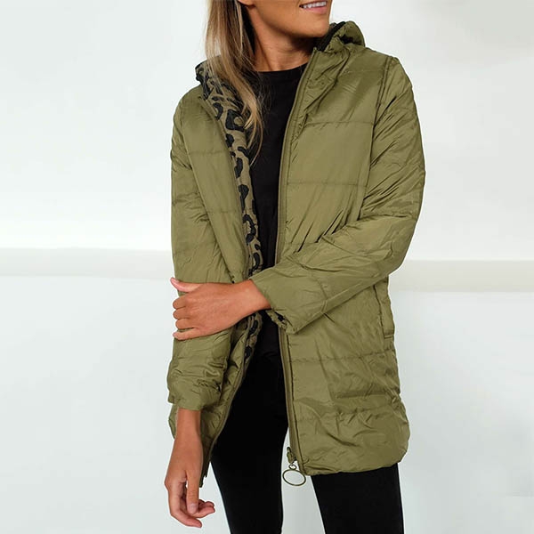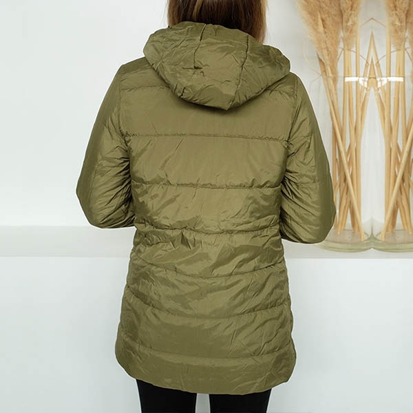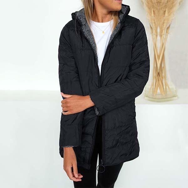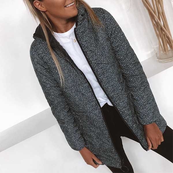 long sleeve,hooded silhouette and front zipper closure,this coat can keep you warm and