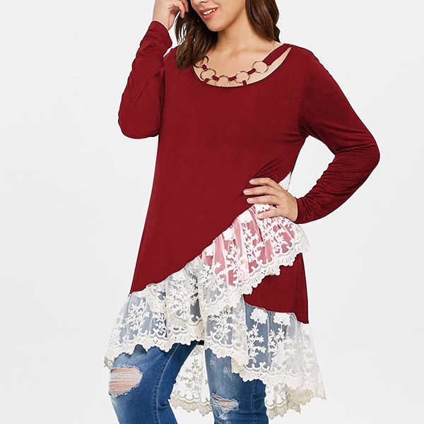 is the lace spliced irregular hem design. Moreover,the unique neckline part will further enhance its charm.
