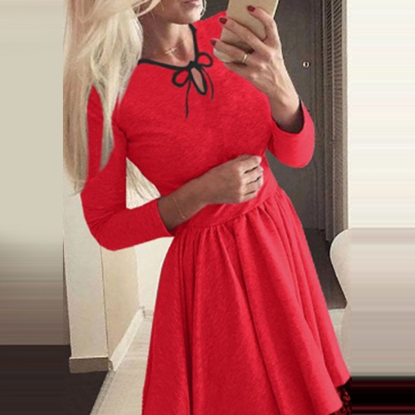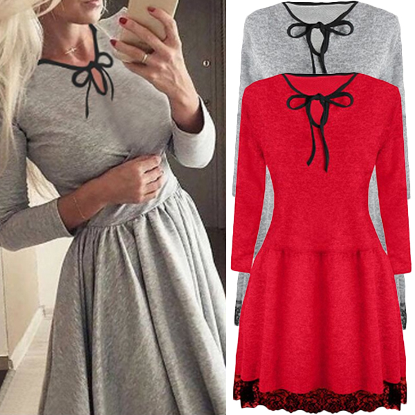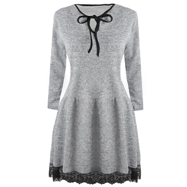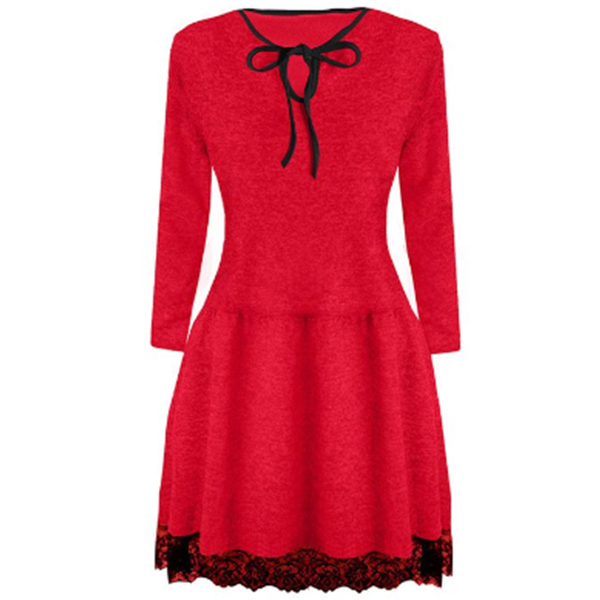 round neck and cozy fabric,this dress is a good way to expose your fashion taste. In addition,the lace spliced hem and