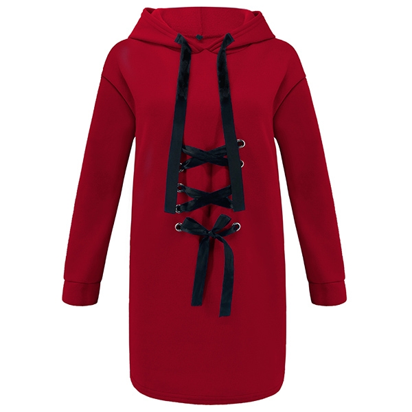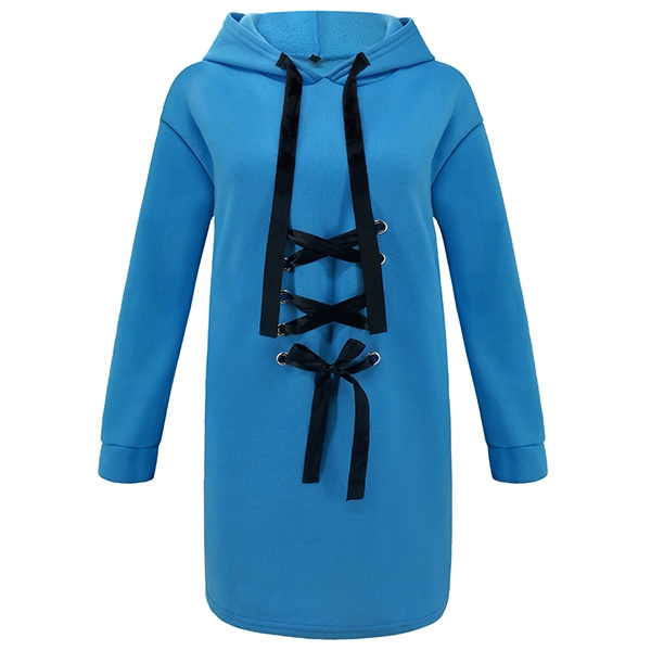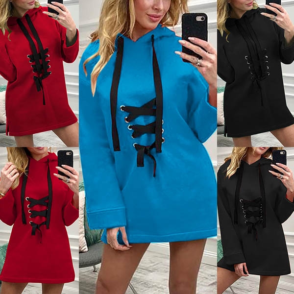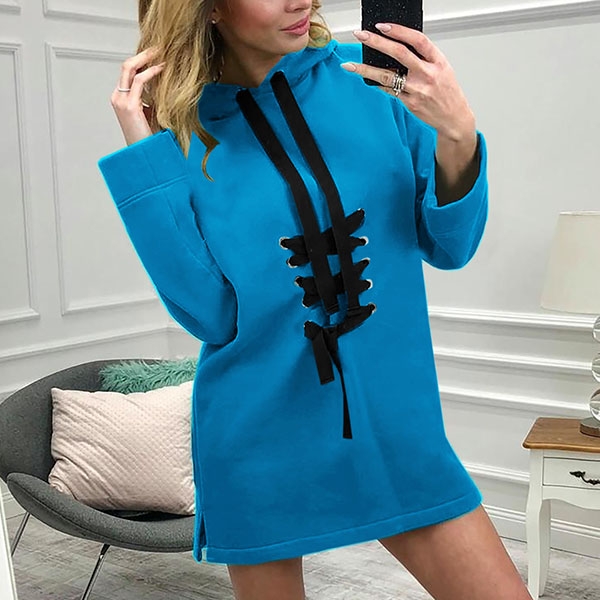 So we suggest you choosing this sweatshirt dress. The solid color tone with lace-up design will