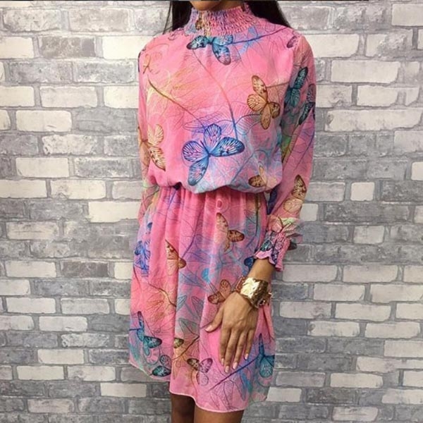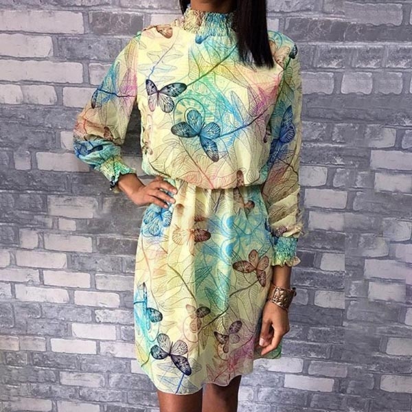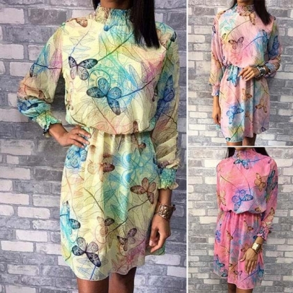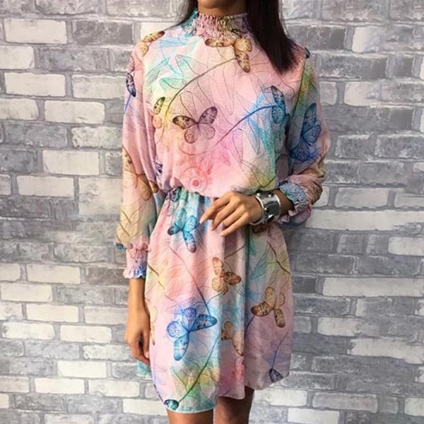 this dress! Finished with long sleeve,mock neck and an elastic waist,its vibrant butterfly printed