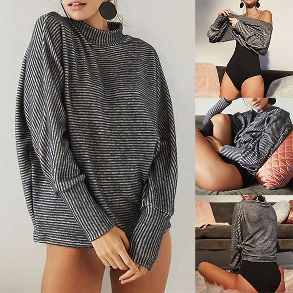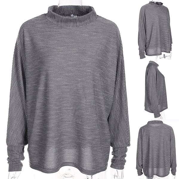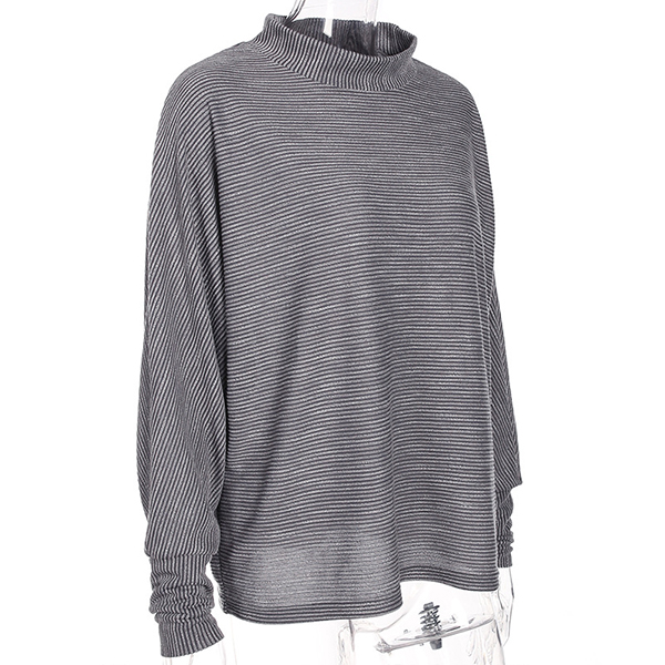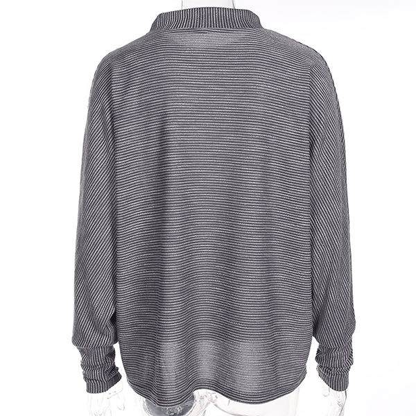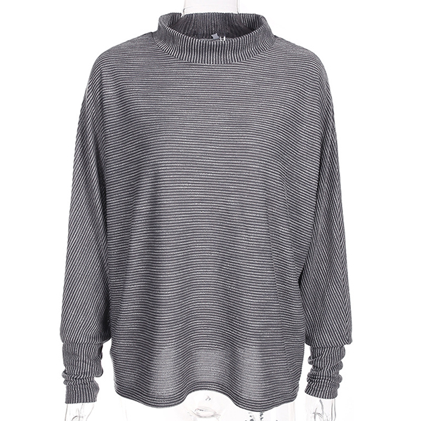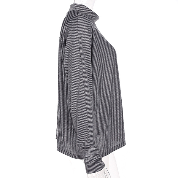 Fashion Long Sleeve Mock Neck Loose Striped T-shirt