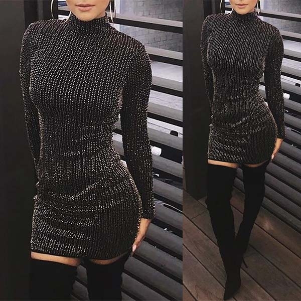 mock neck and a fit silhouette,this dress can showcase your slender figure. And the sequin details