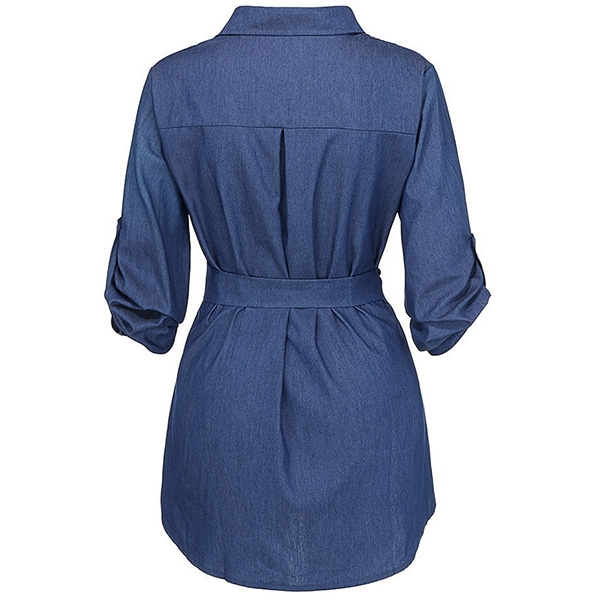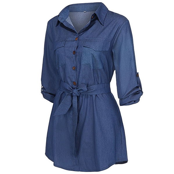 your ensemble. Finished with long sleeve,POLO collar and chest pockets design,this denim dress is