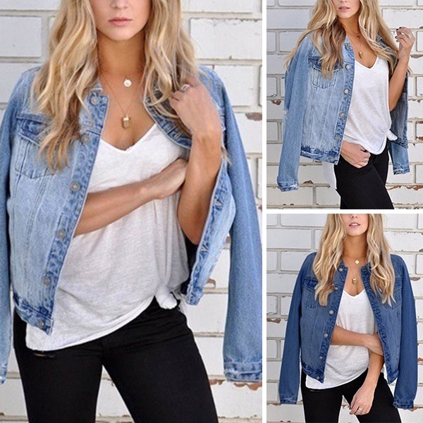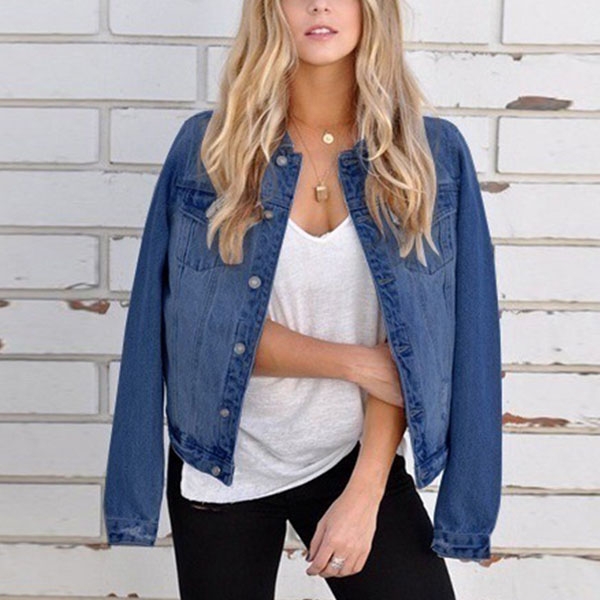 When the days get a little cold,you can just slip into this denim coat. It is finished with long sleeve,