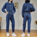 Fashion Long Sleeve POLO Collar Denim Jumpsuit