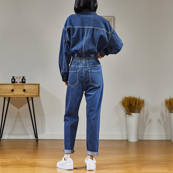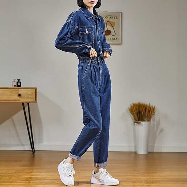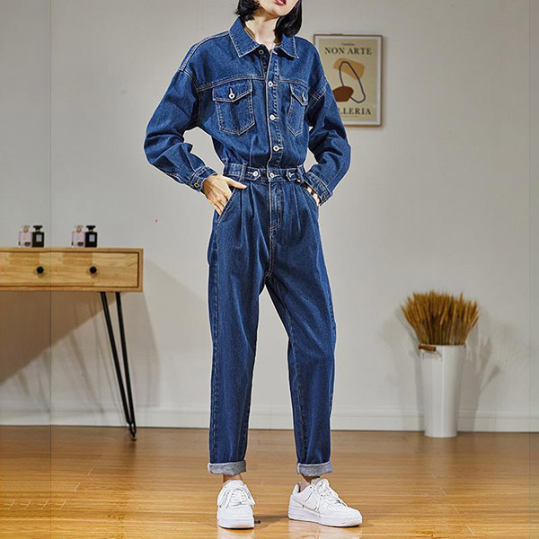 When you wanna your daily style have an update,you can slip into this denim jumpsuit. Designed with long sleeve,POLO collar and a clean silhouette,this piece can showcase your slender figure.The drawstring design at waist part can better highlight your perfect curve.You look so stylish and charming in this jumpsuit.
