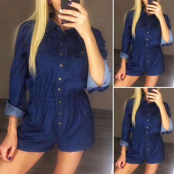 It is a good way to update your daily look with this denim romper. It is finished with long sleeve and POLO
