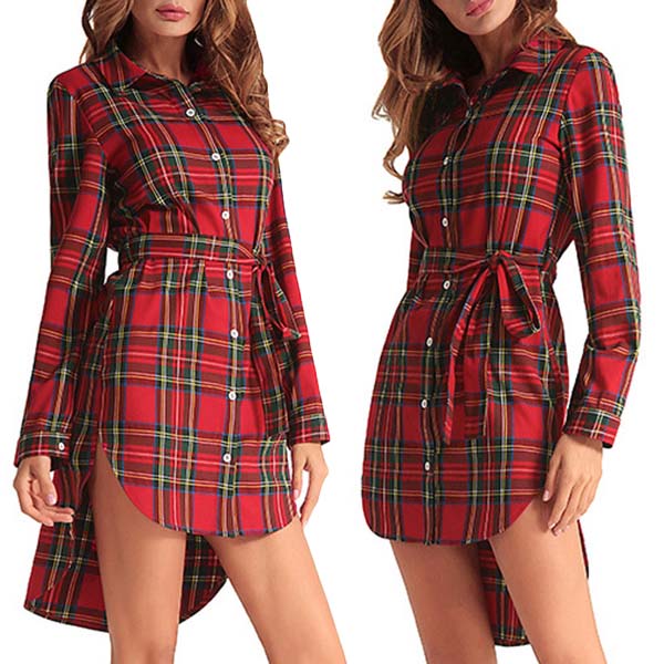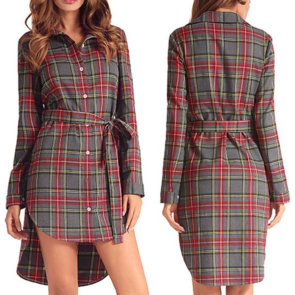 It is a good way to boost your style through this shirt dress. Plaid style,finished with long sleeve,