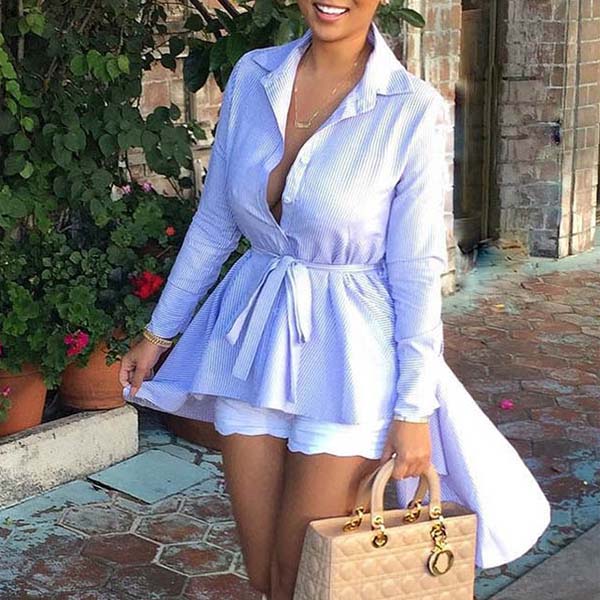 and popular. Finished with long sleeve,POLO collar and a high-low hem,this distinctive dress can offer you