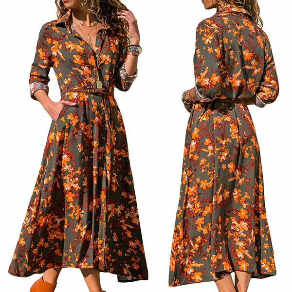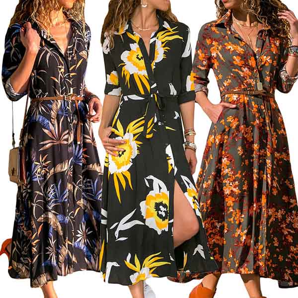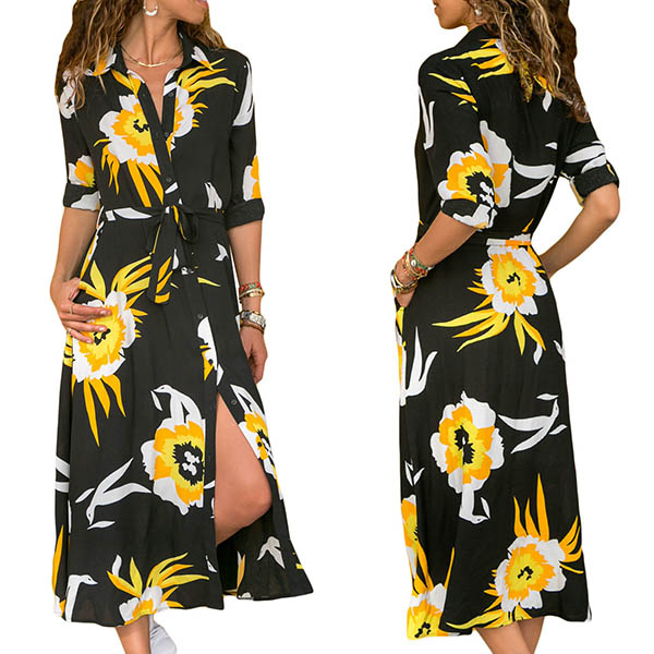 which makes this dress look more attractive. Finished with long sleeve,POLO collar,single-breasted and slit