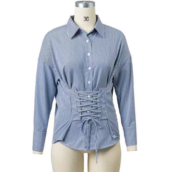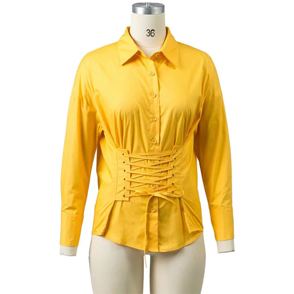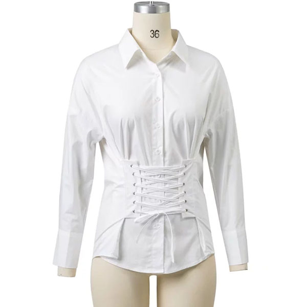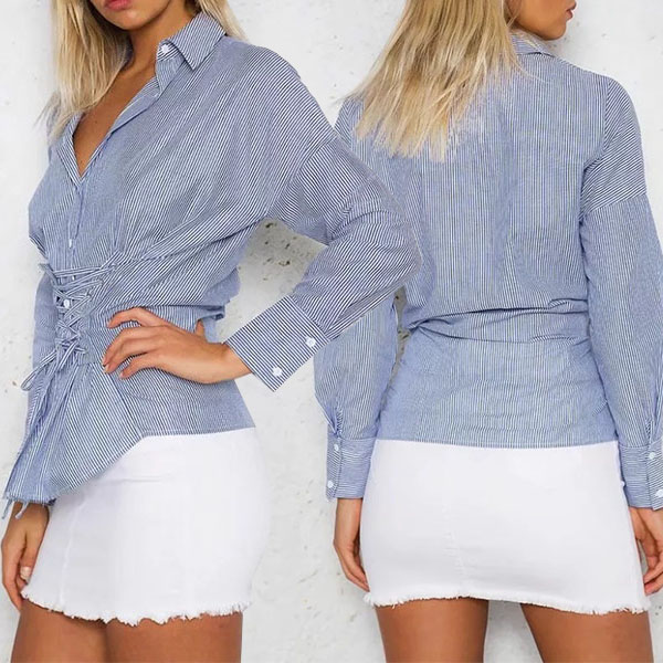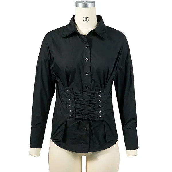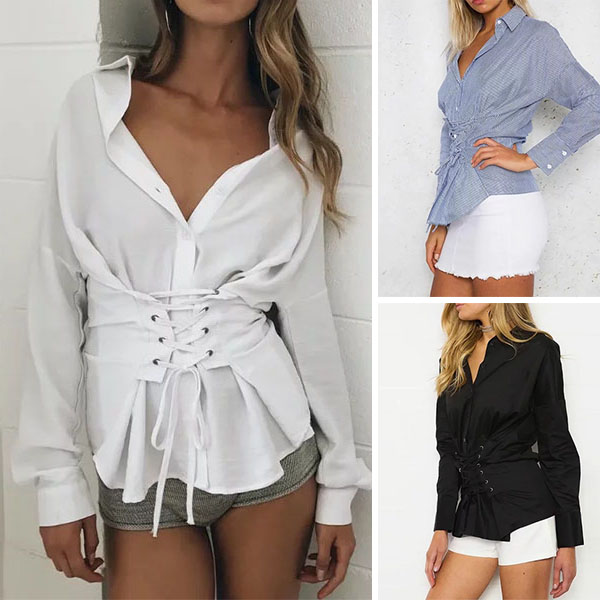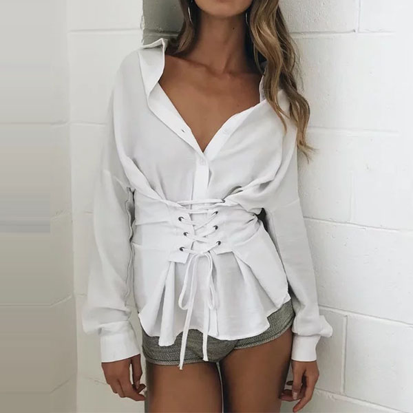 and distinctive design like lace-up detailing at waist part make this shirt look so different and unique. A perfect combination