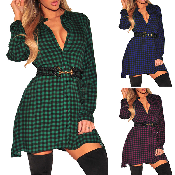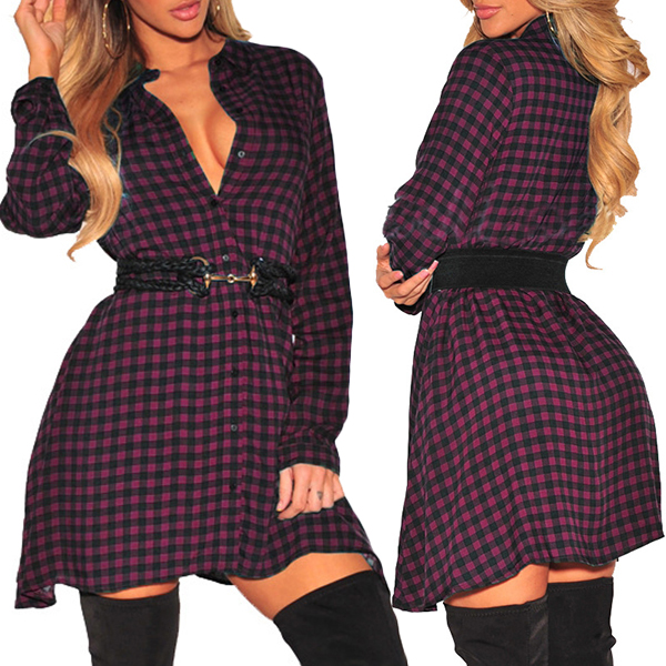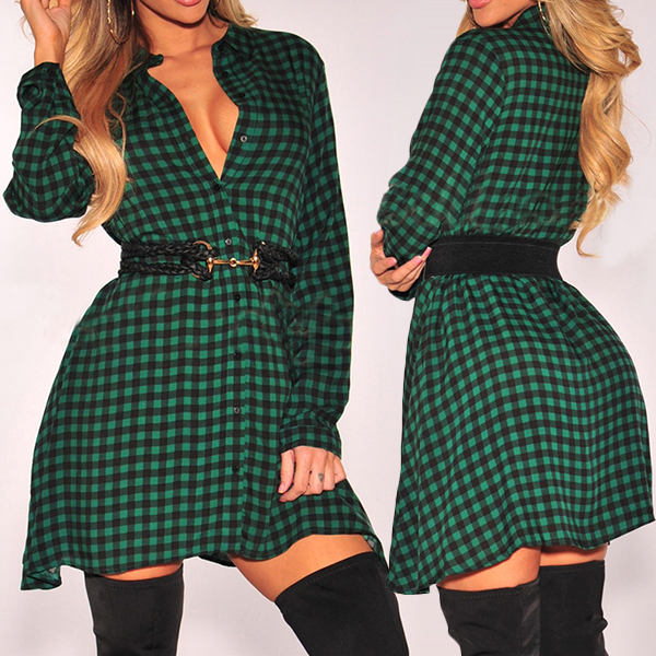 Plaid style,designed with long sleeve,POLO collar and single-breasted,this wonderful dress can make any