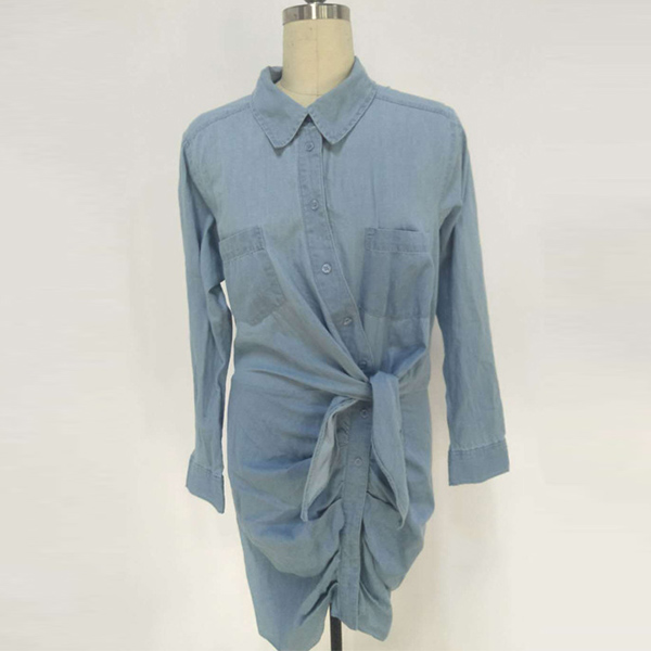 Fashion Long Sleeve POLO Collar Slim Fit Lace-up Denim Dress