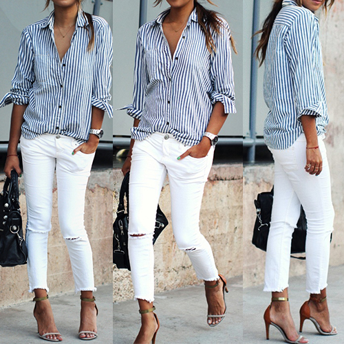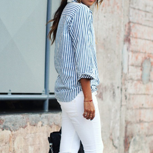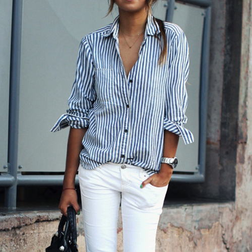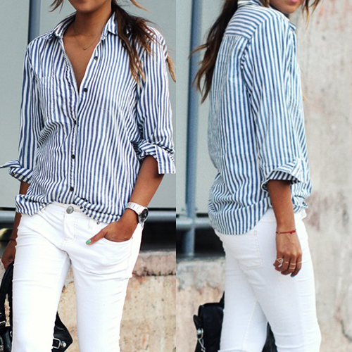 Shirt is a must-have item for every girl! If still not having one,then seize this chance. Striped style,