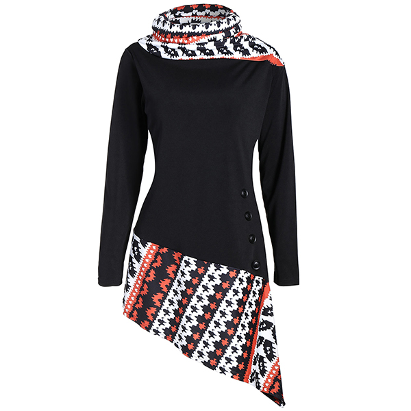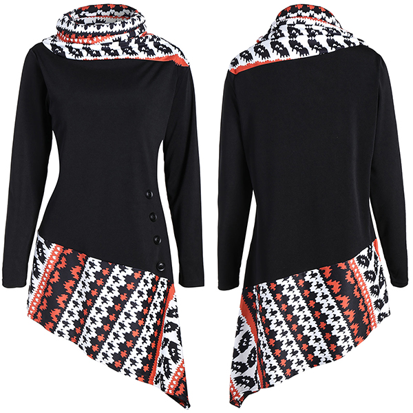 Add a touch of chic and unique personality to your wardrobe with this t-shirt! The printed spliced heaps collar