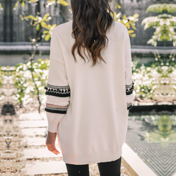 and a clean silhouette,simple yet cozy,while the printed spliced design enriches the design style.