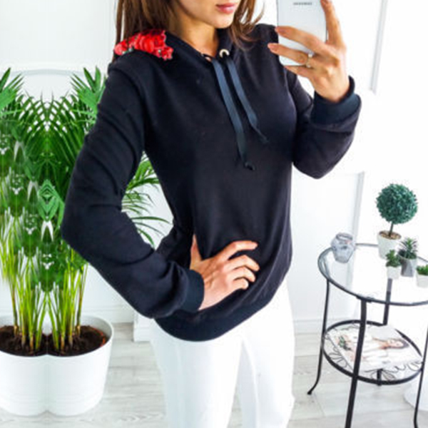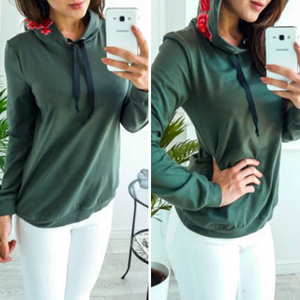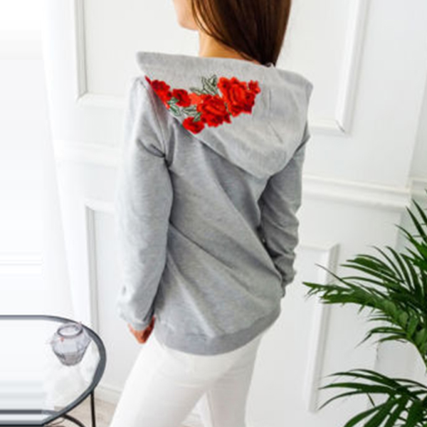 with long sleeve and hooded silhouette,classic and stylish. Moreover,the rose embroidered design makes this piece