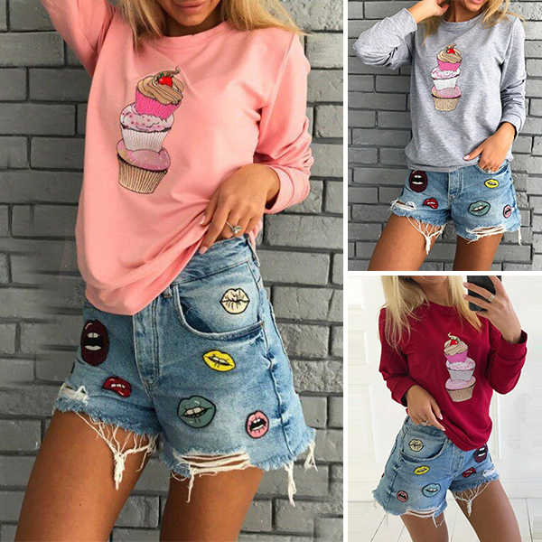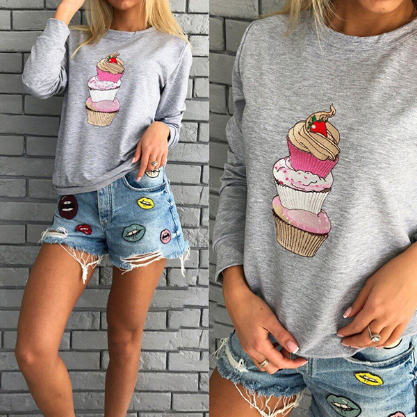 color,with cake printed pattern design lends you some cute and playful flavor. Designed with long sleeve,round neck