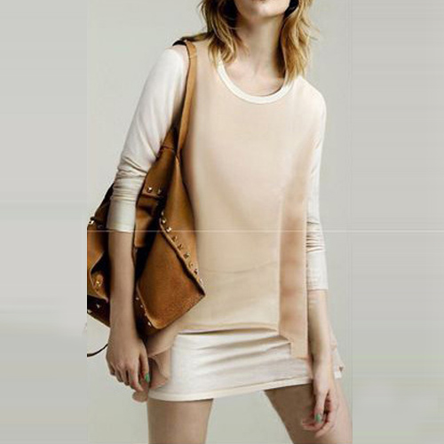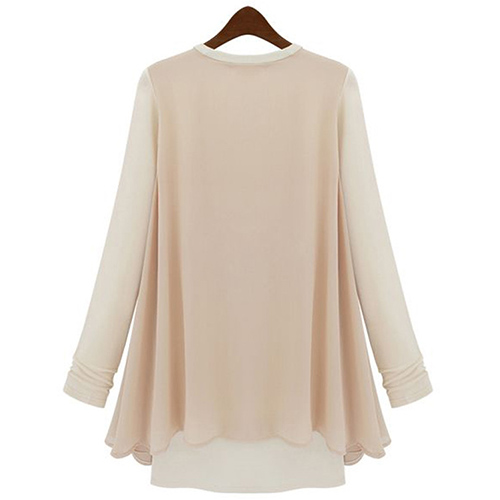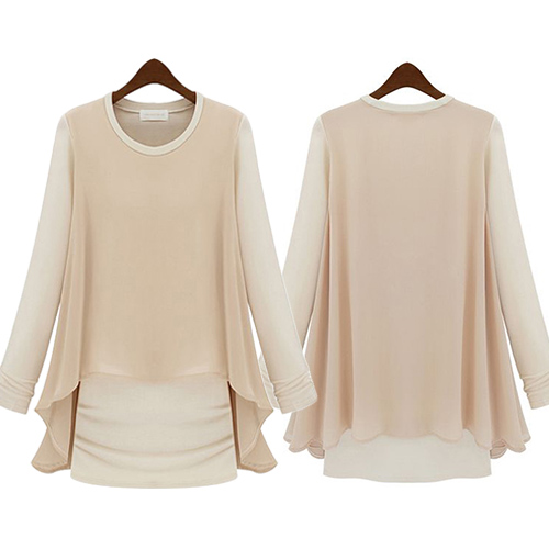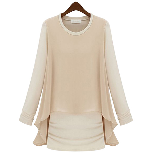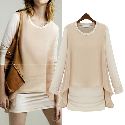 Mock two-piece style,with long sleeve,round neck and chiffon spliced design,stylish and