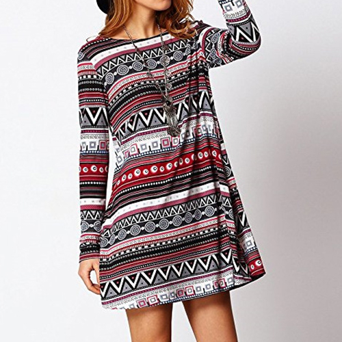 cozy fabric,with long sleeve and round neck design,this dress can give you a comfortable day.