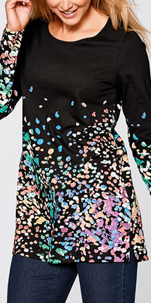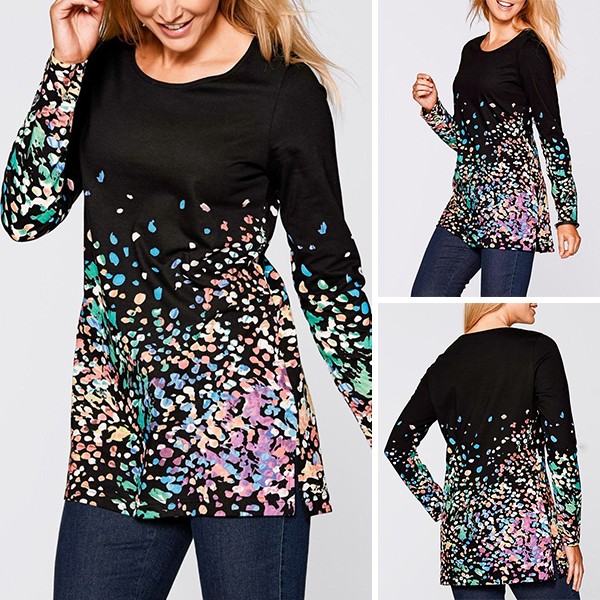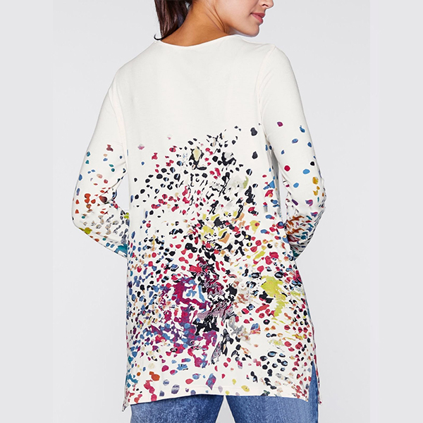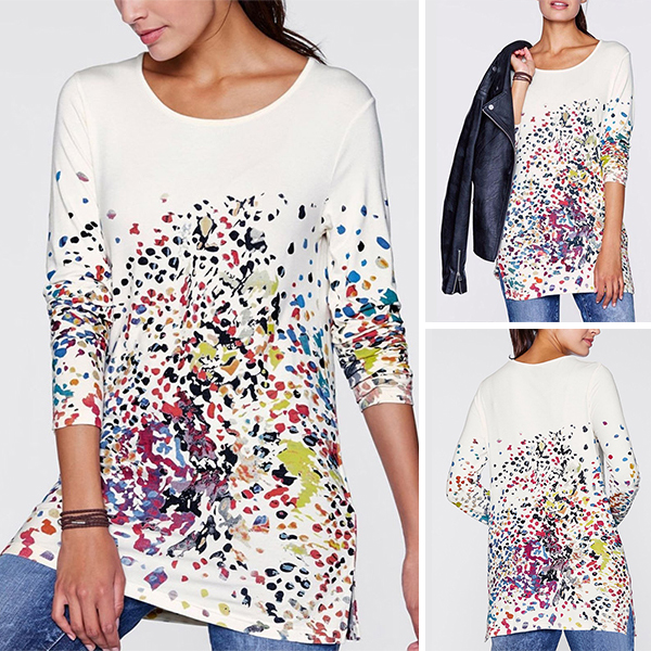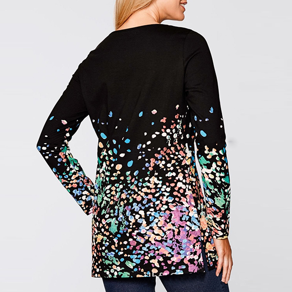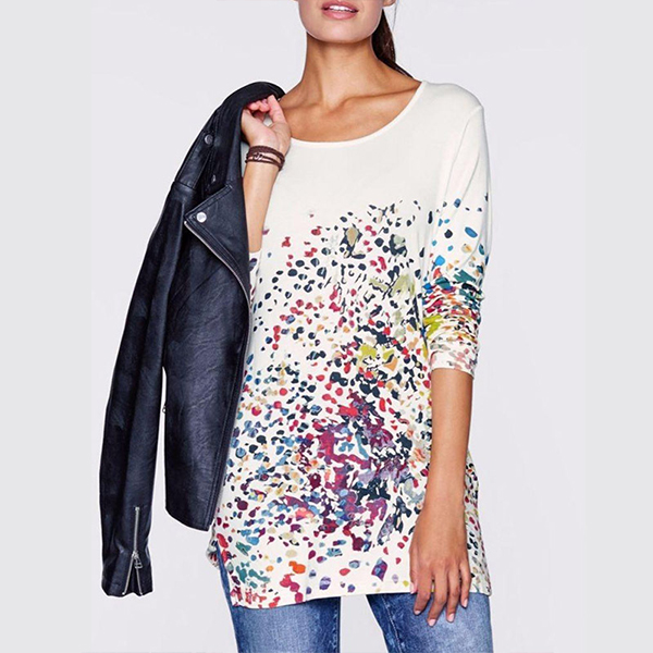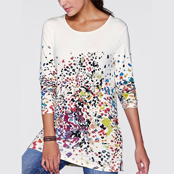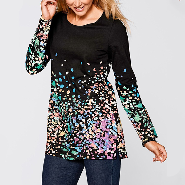 Fashion Long Sleeve Round Neck Colorful Printed T-shirt