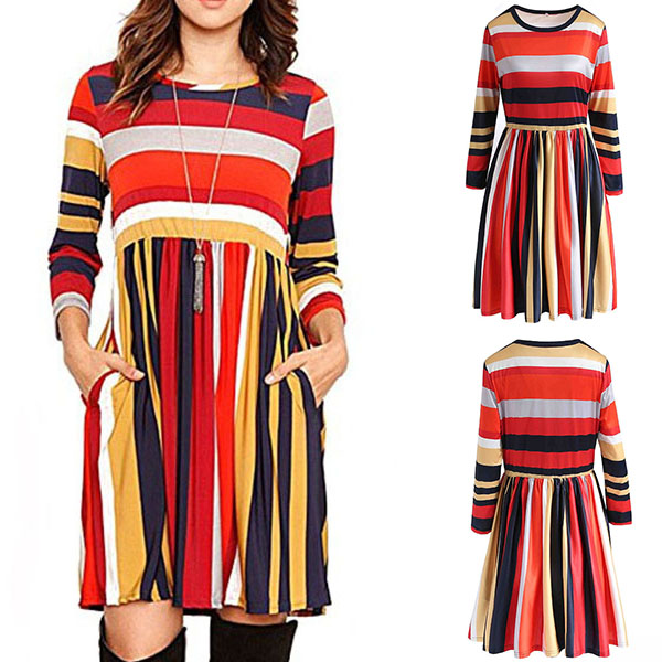 with long sleeve and round neck design,this dress can promise you a comfortable day.