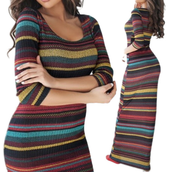 Colorful striped design helps you catch up with the newest fashion trend,while its fit silhouette and maxi length