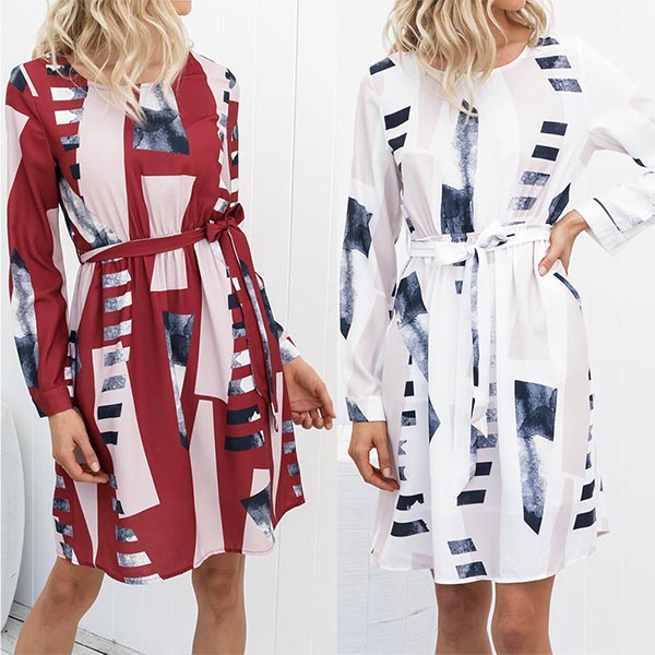 The geometric print details make this piece look so chic and eye-catching. Finished with long sleeve and round