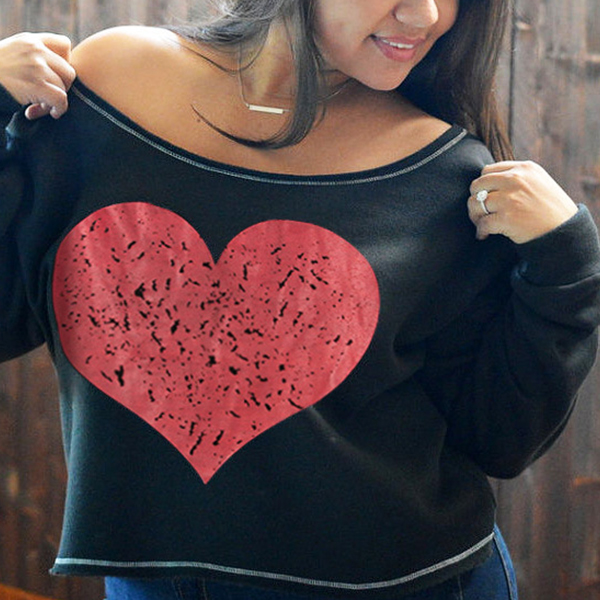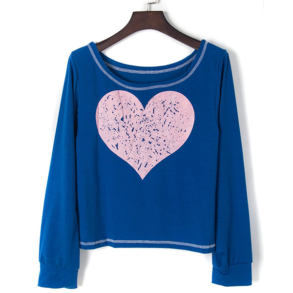 with long sleeve and round neck design,this t-shirt can keep you comfy all day. And its heart printed pattern design adds some