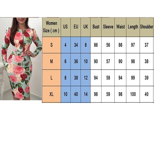 XL : Bust : 98cm(38.58"); Waist : 84cm(33.07"); Shoulder : 40cm(15.75"); Sleeve : 59cm(23.23"); Length : 100cm(39.37");