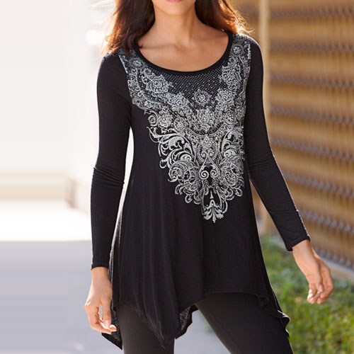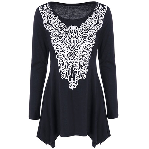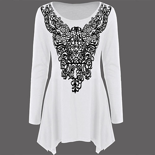 neck and an irregular hem,its printed details at front makes this piece more attractive and appealing. So why not add one