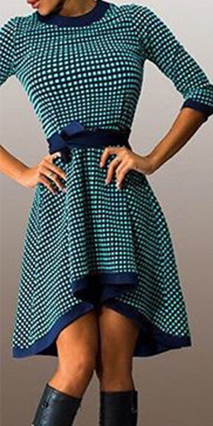Outfitted with long sleeves,round neckline and irregular hem,this dress is deserved to become