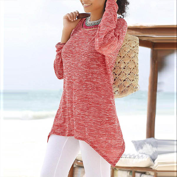 an irregular hem,simple yet stylish,and its soft and breathable fabric can offer you a comfortable day.