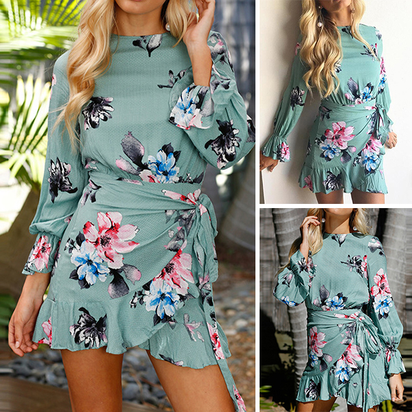designed with long sleeve,round neck and an irregular ruffle hem,this dress is also a good way to demonstrate your
