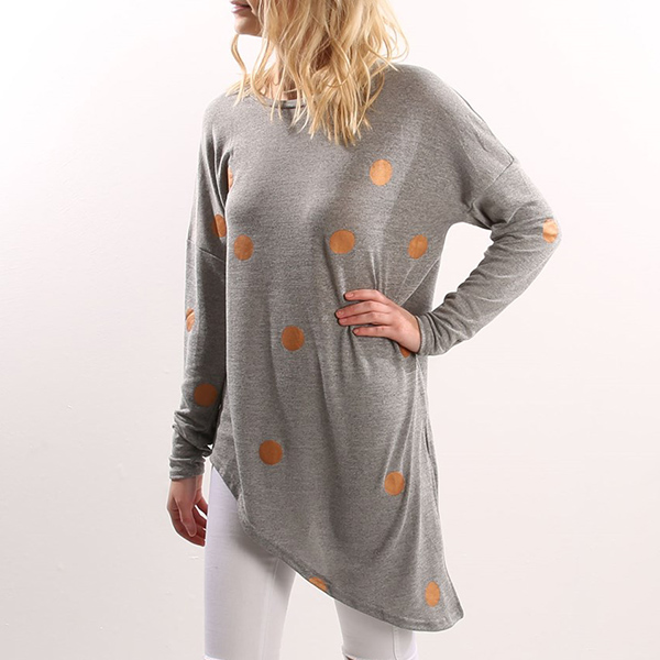 Start a new day from this chic t-shirt! Dots printed design makes this piece look so cute and playful,while the