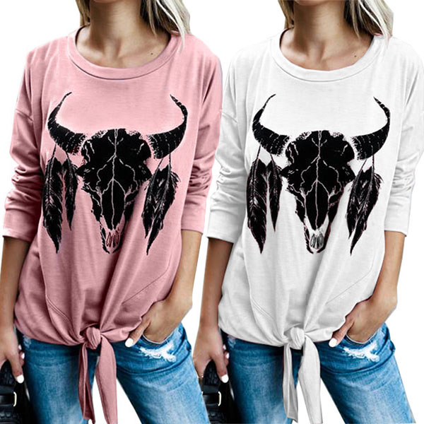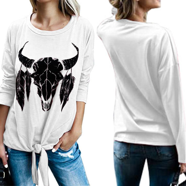 from soft and breathable fabric,with long sleeve,round neck and a knotted hem,this t-shirt can provide you a