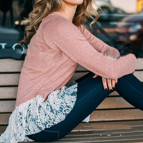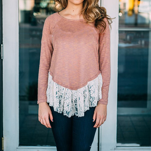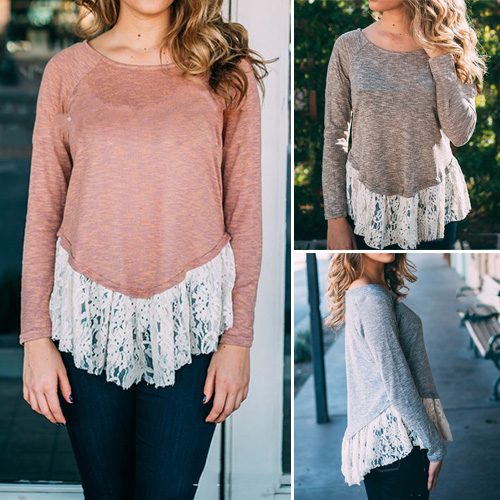 round neck and lace spliced hem design,chic and stylish. And its soft and breathable fabric can keep