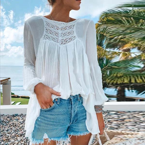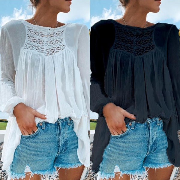 It is designed with solid color,long sleeve and round neck design,the lace spliced design will make it look