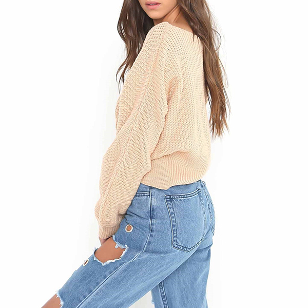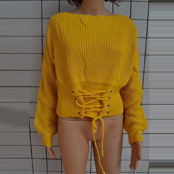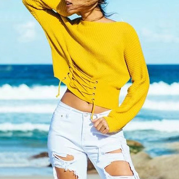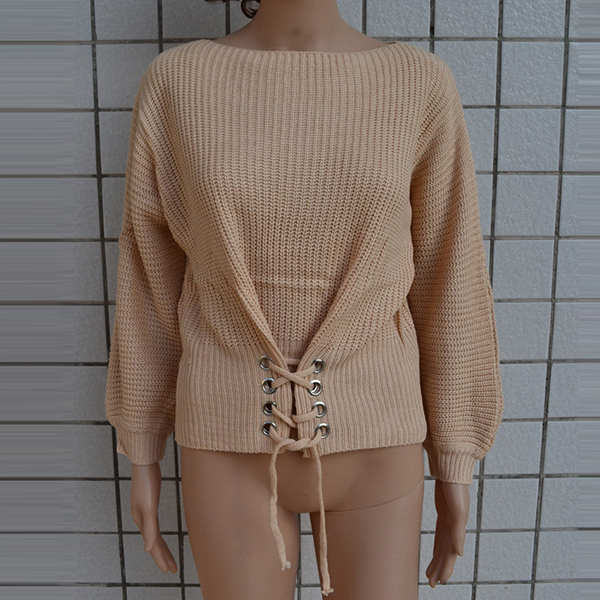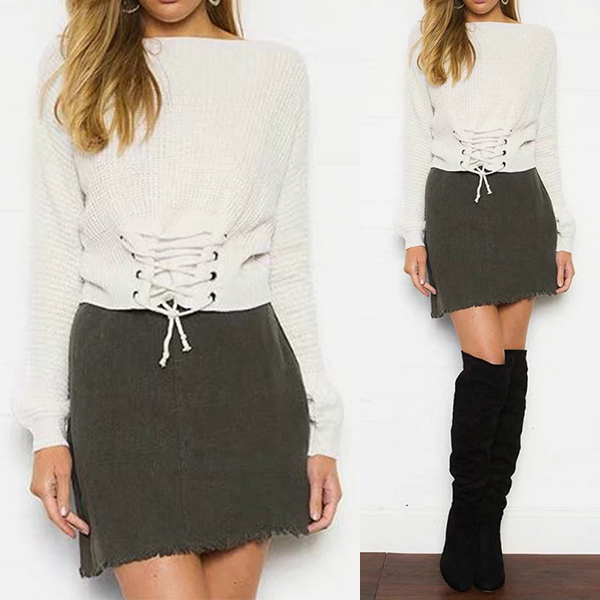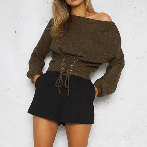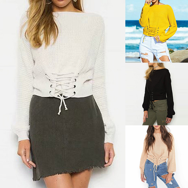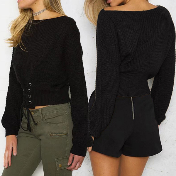 sweater is the lace-up hem design. Try to match with your high waist bottoms to finish a charming dress up.