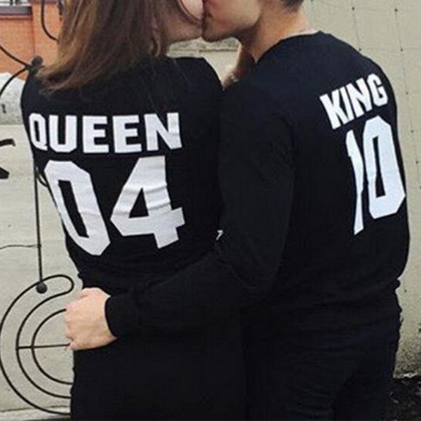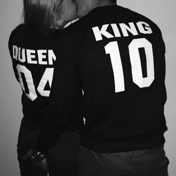 Start a romantic and sweet day from this couple sweatshirt! The letters "King" and "Queen" design stands for your