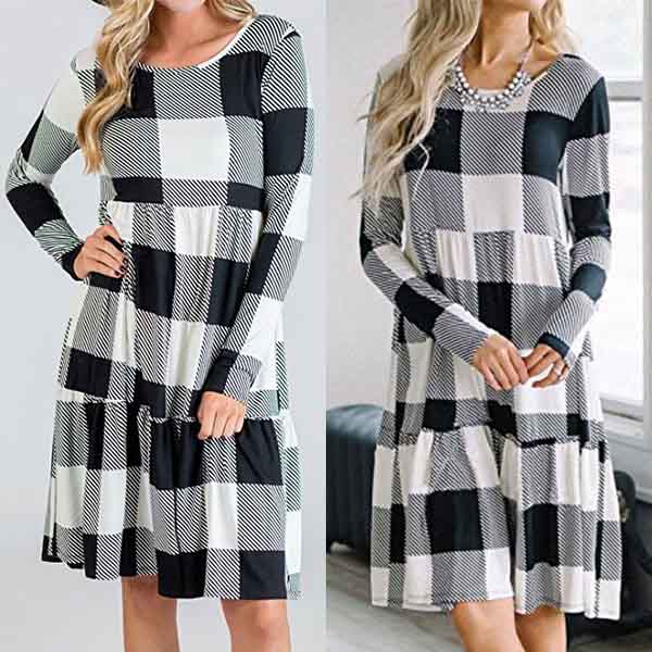 Wanna make your busy routine much easier? Then introduce this dress to your smart ensemble. Plaid style,